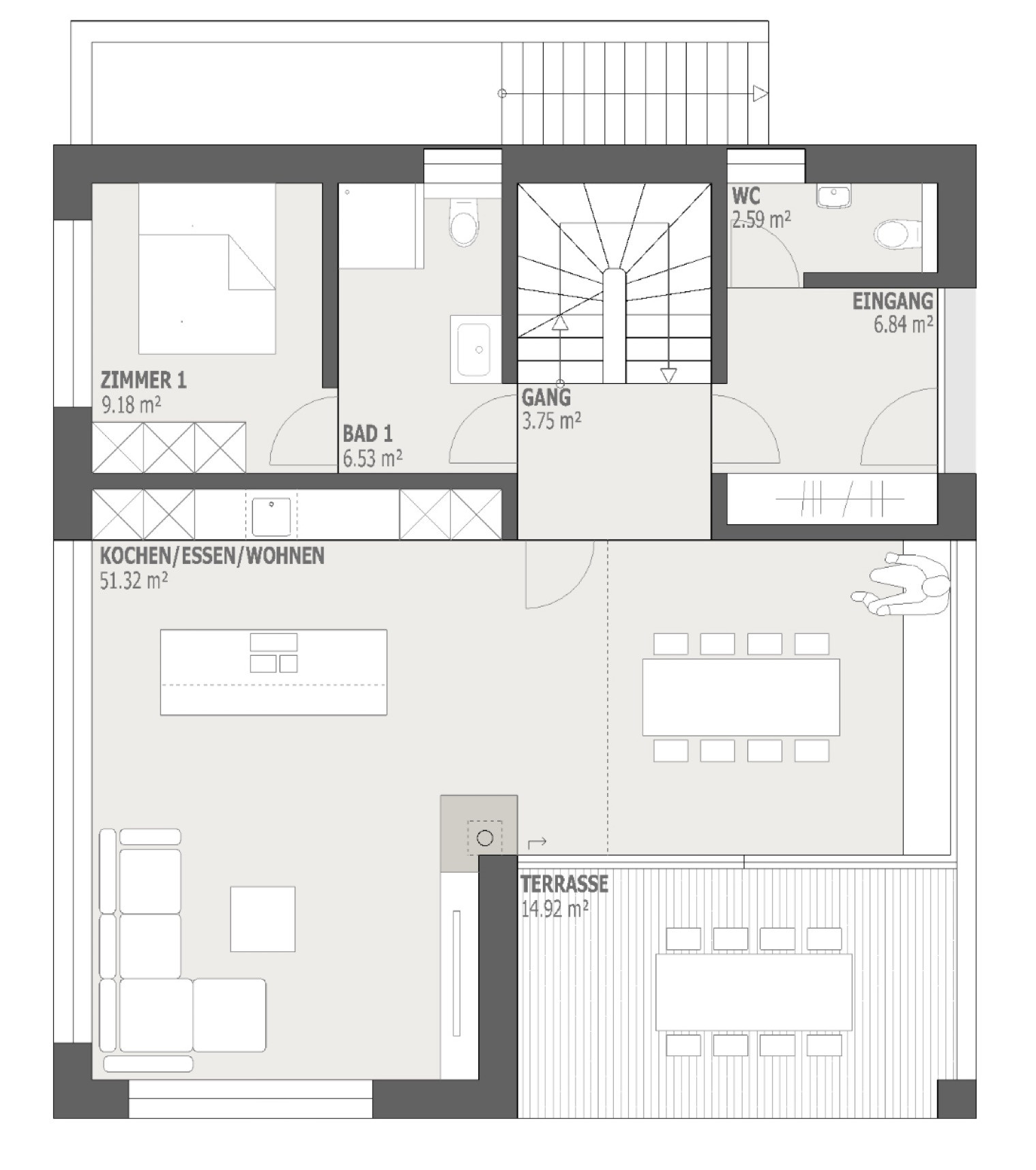 Die aktuell gezeigten Bilder sind Visualisierungen, da sich das Haus noch in der Fertigstellung befindet. Schon bald folgen detailgetreue Aufnahmen, die Ihnen einen noch besseren Eindruck vermitteln.